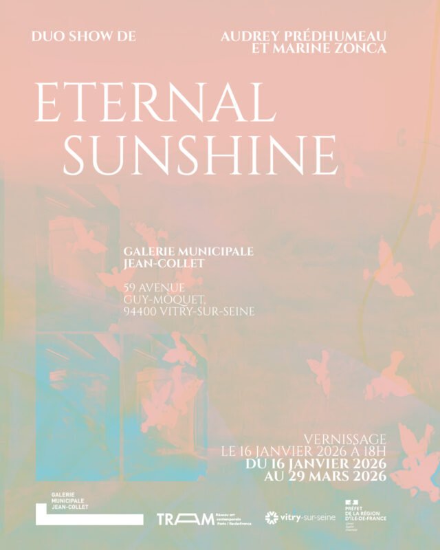 La Galerie municipale Jean-Collet ouvre sa nouvelle saison avec Eternal Sunshine, une exposition réunissant les artistes Marine Zonca et Audrey Prédhumeau. Conçu comme un véritable « palais de mémoire », ce duo show propose une immersion dans un espace sensible où réminiscences, perceptions troublées et sensations diffuses se répondent.
